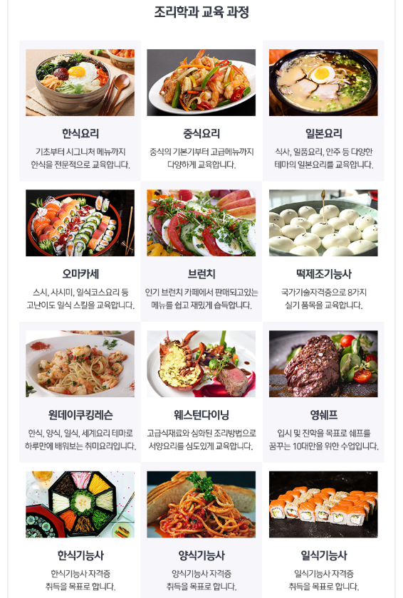 직장인조리학원 에서는 짧은 시간 내에