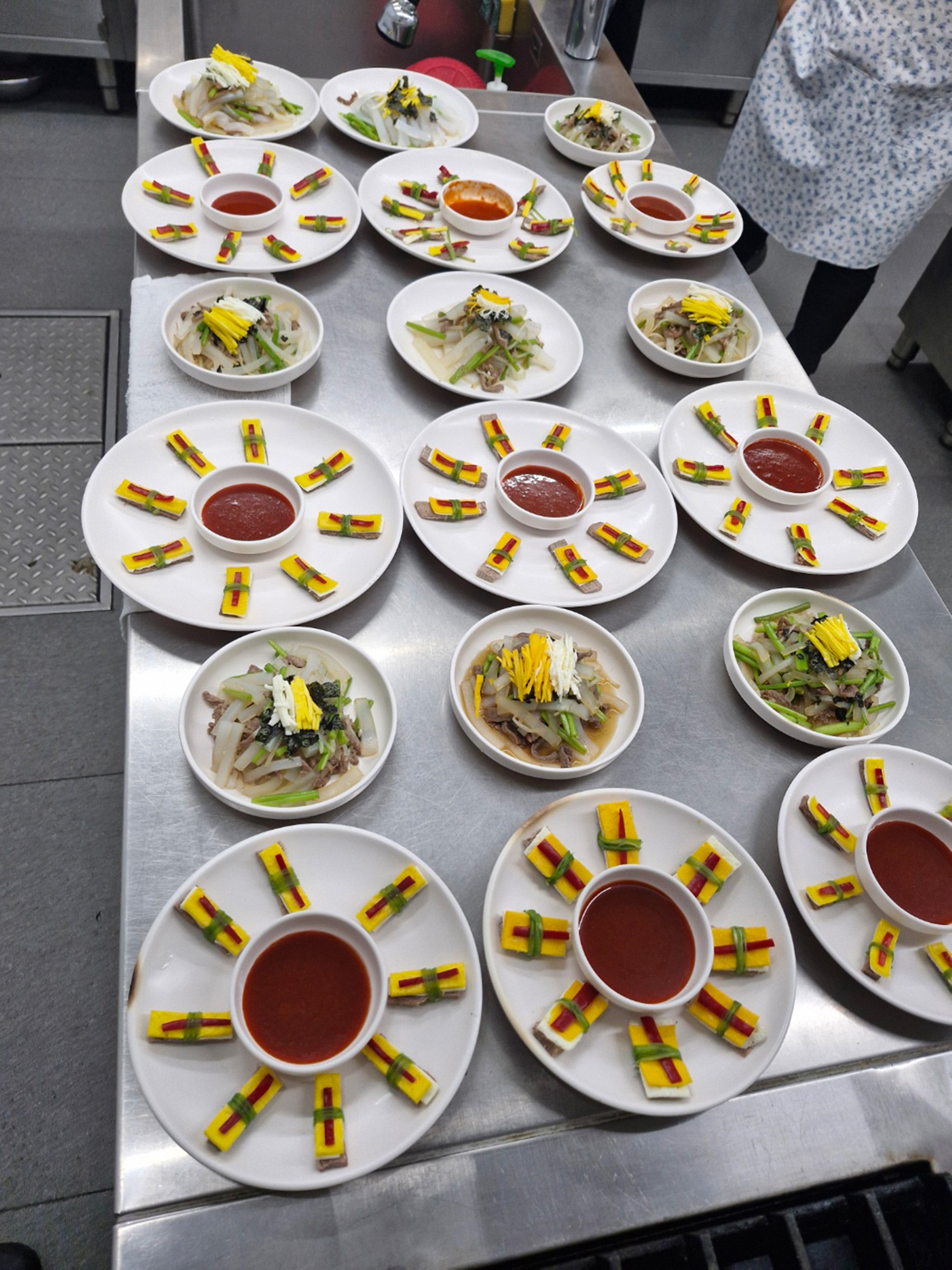 채소, 소고기, 황/백지단의 크기는