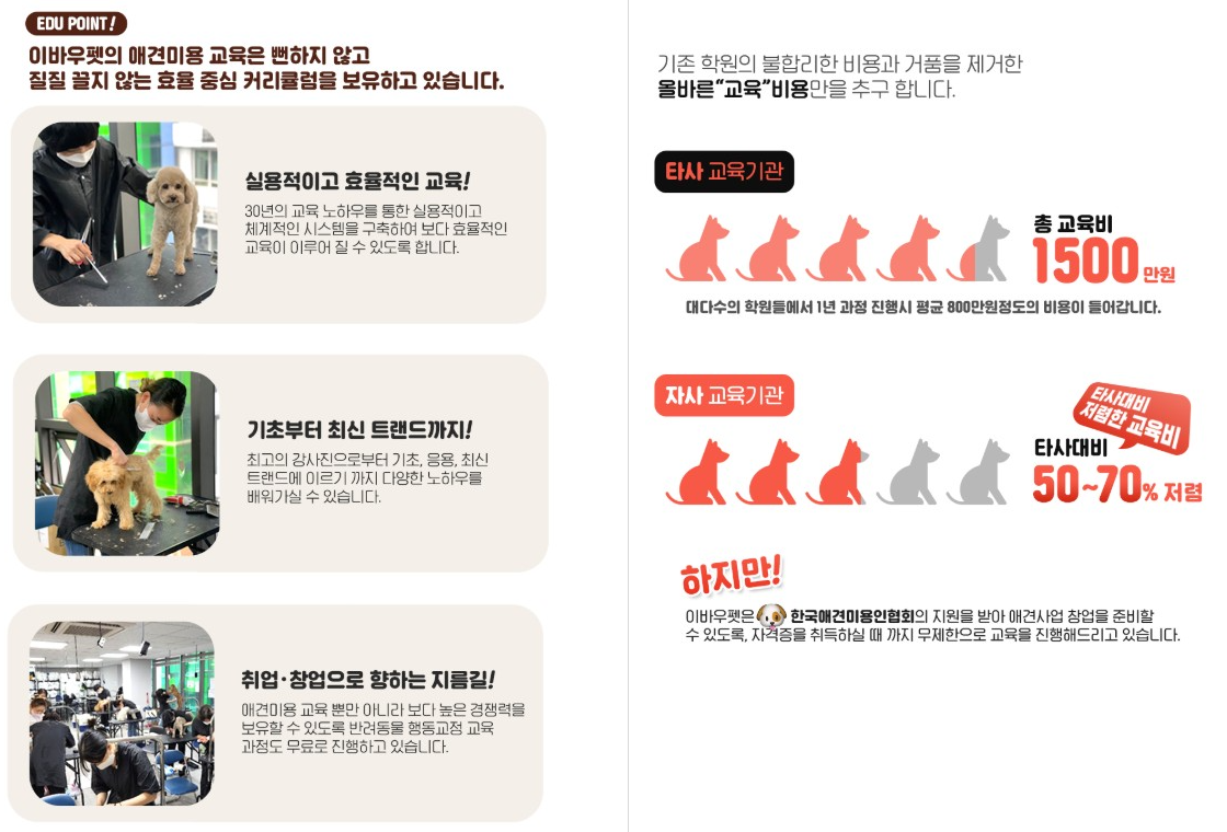 - 단순 미용 기술을 넘어 애완동물 전문지식 습득 가능